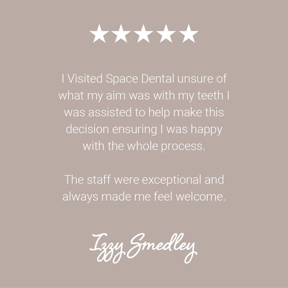 “At Space Dental, we put our patients first. Every treatment we offer is bespoke, chosen with your health and happiness in mind. We explore all options to provide carefully planned, non-invasive dental treatments, creating beautiful smiles that restore confidence and wellbeing.”
